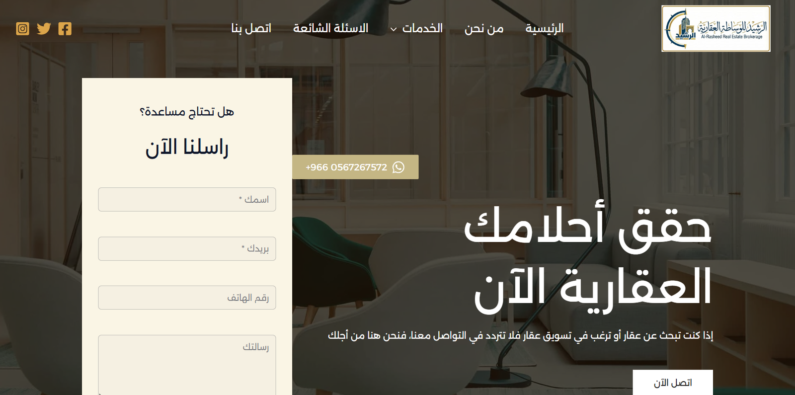 An Arabic-language platform for real estate, land sales, and brokerage services.
